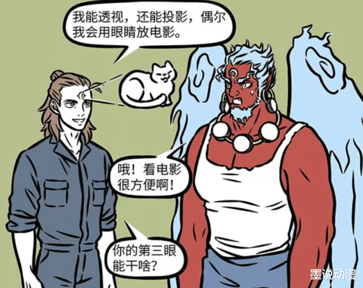 杨戬的第三只眼睛是神力来源,拥有透视、投影和放电影等等功能。平时第三只眼睛还能切换多个样式,就是一周都能不带重样。听到能放电影,雷公觉得很方便,这就可以省掉一个投影仪。杨戬也很好奇雷公的第三只眼睛有什么作用。