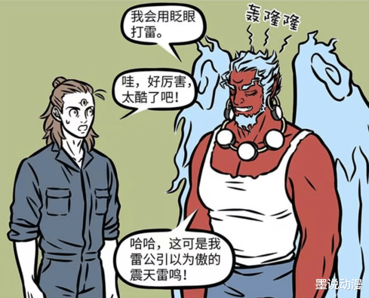 杨戬和雷公相遇,两人关系应该还好。因为都有第三只眼睛,所以雷公对杨戬也很好奇。雷公想知道杨戬的第三只眼睛到底有什么作用?如果看过以前的漫画,就知道这第三只眼睛能力众多。